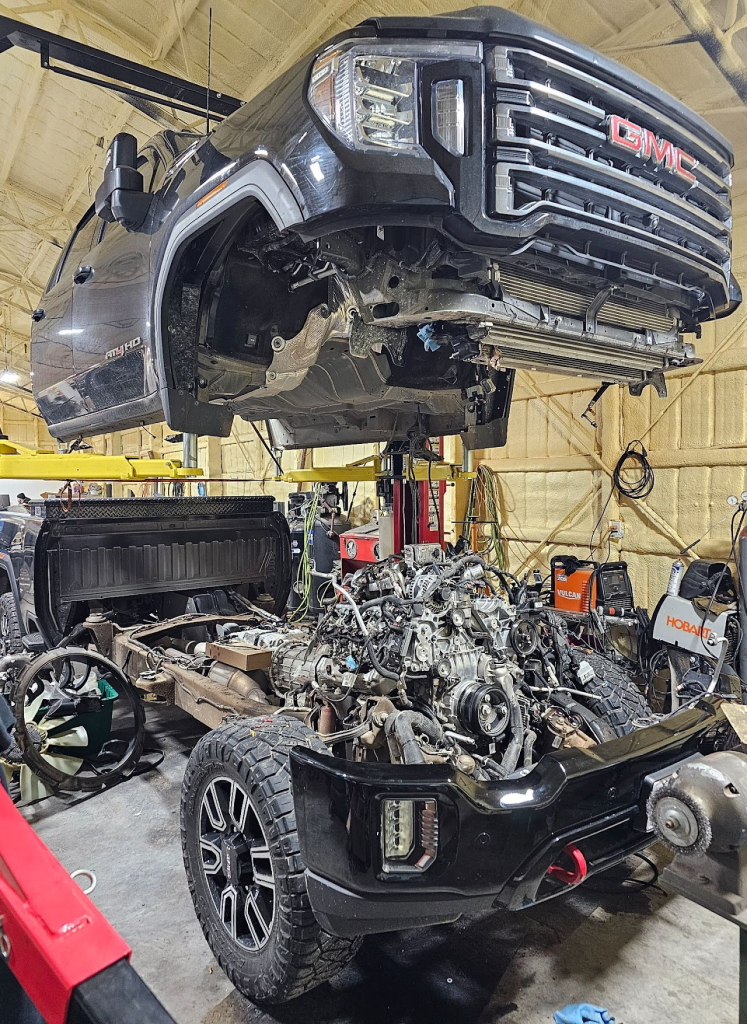 2022 GMC getting a new fuel system, Pump, Injectors, Fuel Rails, and all lines to the fuel tank. Taking the cab off the truck makes all the difference when doing this job!